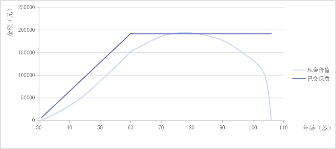 另外,如果想要身故責(zé)任,我是不太建議選擇賠已交保費(fèi)的。為什么這么說呢?看看下面這張圖: